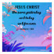 This beautiful tropical scene illustration displays the verse Hebrews 13:8. It reads "Jesus Christ the same, yesterday, today, and forever. Text can be personalised. The colours are sky blue, pink, white and purple.
