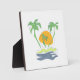 Tropical island beach scenery. Outline palm tree Plaque