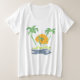 Tropical island beach scenery. Outline palm tree Plus Size T-Shirt