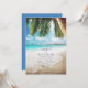 Turquoise waters, white sand and palm tree design wedding invitations for your tropical destination or beach wedding. Customise the invitation with your wedding details.