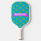 Remembering days of Gidget, surfing on the beach. Hit the courts this summer with this sun filled Caribbean blue palm tree pickleball paddle. A place on one side for personalisation with your own name or message, or eliminate the banner and text.