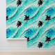 Tropical island palm trees coastal ocean pattern wallpaper