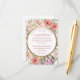 Tropical pastel florals plumerias and artichoke with faux gold circular border (optional). All text is customisable, as well as the backer colour.