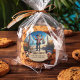 Add a touch of pirate fun to your party favours with this adventurous pirate-themed sticker! Featuring a watercolor painting of a cheerful pirate boy, his trusty parrot, and a playful monkey on a tropical island with two grand pirate ships in the background, it’s perfect for little buccaneers. The customisable thank-you text allows you to personalise your message, making it a great addition to favour bags, gifts, or decorations. A fun and swashbucklin’ way to thank your mateys for joining the celebration!
