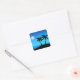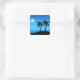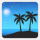 Square Sticker in a black silhouette of a tropical island, under a deep blue night sky, with moon and stars
