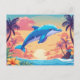 Tropical Island Sunset and Dolphin Postcard