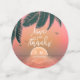 The mouth-watering colours of a summer fruit salad, from melon and peach through apricot and raspberry, give the pieces in this mix n' match design set some of it's irresistible appeal... the beautiful island palm trees, palm fronds, delicate birds in the sky and giant sunrise over sparkling water easily provide the rest. The table confetti shown here feature all of the above plus a template to easily add the bride and groom's names and wedding date. Search ID581 to see the matching products and other colour options for this design.