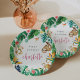 Set the scene for your child's summery tropical jungle themed birthday party with these colourful personalised paper plates. Island chic design features monstera leaves and green watercolor foliage with monkeys, a sloth, a hummingbird and a parrot. Colourful tropical floral accents complete the design. Personalise with your child's name in vibrant pink script lettering, along with the party occasion.