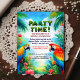 • Celebrate a special day with this vibrant tropical jungle-themed birthday invitation featuring colorful macaws surrounded by lush greenery and tropical flowers. Perfect for kids who love nature, adventure, and cheerful celebrations in a jungle-inspired setting!