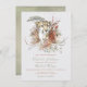 Beautiful watercolor Jungle Cheetah or Leopard with floral elements and grasses, foggy outback or Savanna atmosphere with terra-cotta, khaki and green foliage on a faux, very light grey background. The Back is a mottled watercolor green. Perfect for a safari, zoo, African or wild animal wedding. All wording can be changed to fit your needs, such as a retirement, bridal or birthday celebration.