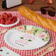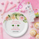 This beautiful and elegant wedding plate features watercolor pink and orange hibiscus flowers and foliage. The text combines handwritten script and serif fonts for a stylish and modern look. This is perfect for a summer tropical wedding.