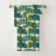 Tropical jungle foliage bath towels in ferns and philodendron leaves.