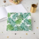 The design features attractive illustrations of palm fronds and leaves. They are painted in watercolor by a skilled artist. The green leaves look absolutely beautiful!