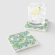 The design features attractive illustrations of palm fronds and leaves. They are painted in watercolor by a skilled artist. The green leaves look absolutely beautiful!