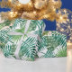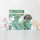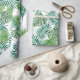 The design features attractive illustrations of palm fronds and leaves. They are painted in watercolor by a skilled artist. The green leaves look absolutely beautiful!