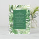 Tropical leaf and script watercolor wedding invite. Hand painted script text. Part of a on trend summer collection. Background colour can be changed.