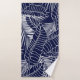 tropical leaf pattern on the navy blue background bath towel