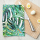 Tropical Leaf Pattern Palm Fronds Gold Glitter Tea Towel