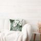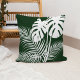 Add a touch of class to your decor with this beautiful tropical foliage throw pillow featuring palm fronds and philodendron leaves in white on dark green background for a modern look. Available in additional colours.