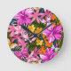 Tropical leaves and flowers round clock