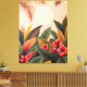 This soft pastel artwork features an oversized illustrated palm, monstera, banana, and hibiscus leaves set against a gentle background with a glowing moon. The dreamy composition combines tropical beauty with a serene, celestial touch, blending lush botanicals with soothing colours. Perfect for bedrooms, living rooms, or creative spaces, this piece brings a calming yet vibrant presence to your walls.
