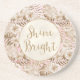 Tropical Leaves Cream Blush Gold Glitter Shine Coaster