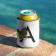 Tropical Leaves Faux Gold Foil Letter A Monogram Can Cooler | Boho monogram can cooler featuring watercolor tropical leaves with faux gold foil accent. This tropical can cooler is perfect for summer. This design is available in other items.