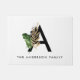 Tropical Leaves Faux Gold Foil Letter A Monogram Doormat | Boho monogram doormat featuring watercolor tropical leaves with faux gold foil accent. This tropical dormant is perfect for summer. This design is available in other items.