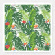 Vibrant tropical botanical pattern featuring lush monstera leaves, palm fronds, banana leaves, hibiscus flowers, and bird of paradise blooms on a dark background. This seamless jungle design is perfect for summer wallpapers, fabric prints, packaging, home decor, beach themes, and tropical branding projects. Bold green foliage and colorful exotic flowers create a fresh, lively nature-inspired backdrop.