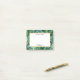 Wedding event post-it notes with a summery feel. Background is a pattern of exotic tropical philodendron leaves in green. Hand painted digital image.. A white frame with a faux gold foil border layered over top. Personalise with the bride and groom's name, wedding date and location of the wedding.