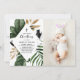Invite family and friends to your child's christening with this customisable tropical invitation. This christening invitation features watercolor illustrations of tropical leaves and plants with faux gold foil leaves and black brush watercolor accents. Perfect for summer and tropical christenings. Personalise by adding your photo and event details.