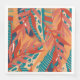 Tropical Leaves in Teal, Red, Orange with Beach coloured trim in red and blue. A popular collection, this decor is available on various decor and entertaining products.