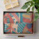 Tropical Leaves in Teal, Red, Orange with Beach coloured trim in red and blue.