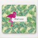 Tropical Leaves Pattern and Pink Flamingo Custom Mouse Pad