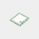 with a green tropical leaves pattern and a white frame with a black border layered over top. A pink flamingo illustration adds a touch of whimsy.
