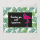 Tropical Leaves Pattern and Pink Flamingo Postcard