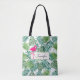 Tropical Leaves Pattern and Pink Flamingo Tote Bag