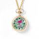 A watch with a green tropical leaves pattern and a pink flamingo illustration layered over top adding a touch of whimsy.
