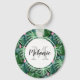 Tropical Leaves Pattern - Green Foliage Monogram Key Ring