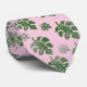 Tropical Leaves Pattern Green on Pink Tie