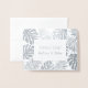 Tropical leaves wedding Thank you silver foil photo note card. A lovely design showcasing leaves of Split Leaf Philodendron (Monstera deliciosa) or Swiss Cheese Plant and palm leaves made of silver foil.