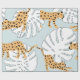 Tropical leopard animal and monstera palm leaves,e wrapping paper