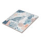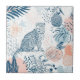 Ceramic Tile - Trendy tropical pattern featuring a leopard with pineapples, leaves, and abstract shapes in blue and peach tones on a clean white background. Modern textured aesthetic with a bold summer vibe. Ideal for animal lovers, tropical style fans, and fashion-forward trend seekers.
