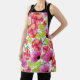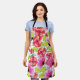 Big bright tropical flowers and lime slices fill the front of this bib front apron. Perfect for the summer season in the kitchen or outdoors by the pool. Hues of hot pink, orange, coral and lime green.