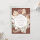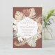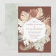 Elegant, modern tropical wedding invitations featuring your wedding details framed by a border of watercolor flowers and tropical foliage in earthy shades of tan, beige, rust, brown, sage, and dark green with a brown background. The unique, tropical wedding invitations reverse to a sage green watercolor background.