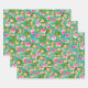 Three sheets of wrapping paper feature tropical hibiscus flowers on a turquoise background (or any colour you choose). MORE colours in our store.