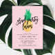 Invite friends and family to your graduation luau with fun graduation party invites. The graduation party luau invitations feature a watercolor pineapple, pink background, trendy script font, placeholders for your custom text, and a bold black and white dot pattern on the back of the invite.