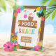 Welcome guests to your Food Shack with this fun luau style sign! Featuring tropical details like pineapples, flamingos, tiki masks, palm leaves, and colourful lanterns, it’s the perfect way to dress up your snack table.