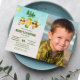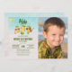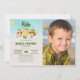 The invitation showcases a picturesque beach backdrop with turquoise waters and sandy shores. A charming, hand-drawn pineapple wearing a party hat takes centre stage, adding a playful and tropical touch. The colours and lush greenery capture the essence of a tropical paradise, setting the stage for a memorable celebration.