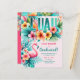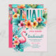 Fun Graduation themed Tropical Luau, pool, beach, themed party invitation for girls with trending colours hot pink and teal. And check out the Flamingo!